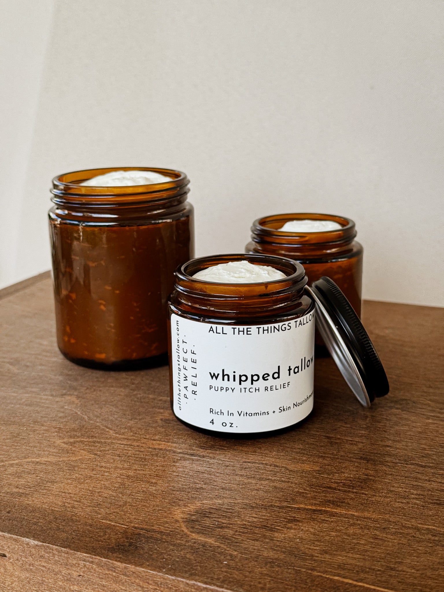 Pawfect Relief is a whipped tallow balm specially formulated to soothe your pup's itchy skin. Rich in nourishing tallow, this creamy blend helps calm irritation and support your dog's natural skin barrier. Simply apply to affected areas for gentle, natural relief. Your furry friend will thank you for the comfort and care. Perfect for sensitive skin and seasonal itching.