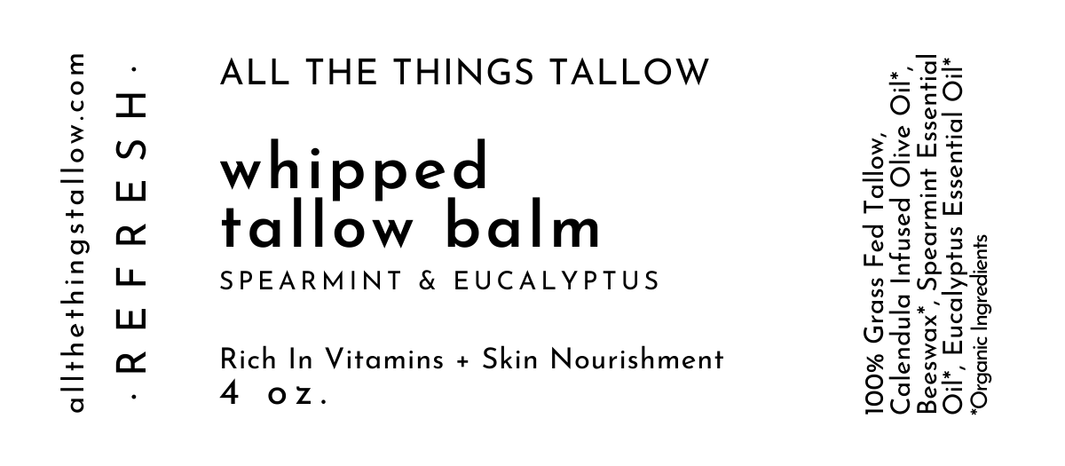 Refresh Whipped Tallow is made with high-quality tallow blended with pure spearmint and eucalyptus essential oil. This unique combination provides a refreshing and invigorating experience, while the tallow nourishes and smooths skin. Enjoy the benefits of all-natural ingredients for healthy skin.
